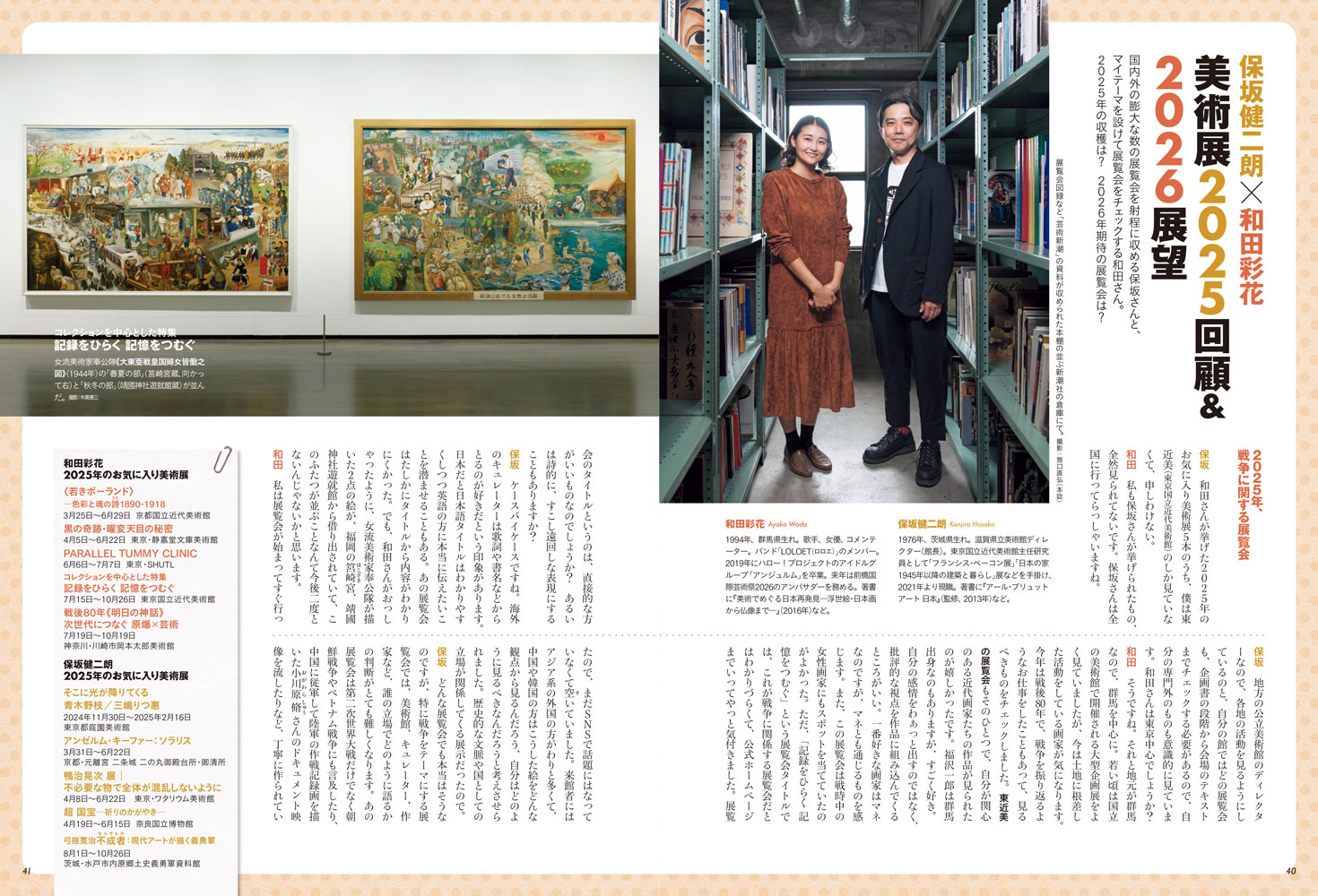 まずは全国の美術館・博物館、約300館と主催やPR会社各社に情報をお寄せいただくところからはじまり、そこから編集部がおすすめしたい、25の展覧会を取材しご紹介しています。この25展、開催時期やジャンルの偏りが生じないように選ぶのですが、それでも、その年の傾向のようなものがぼんやりと浮かび上がってくるのが面白いところ。