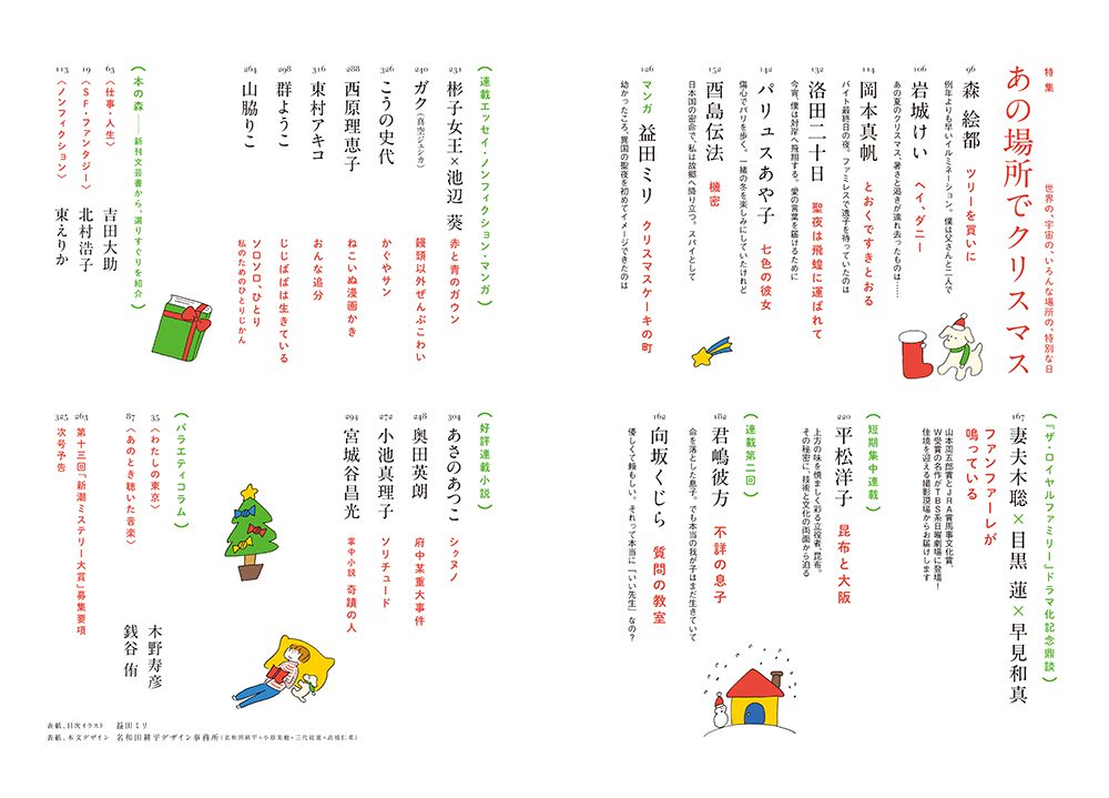 世界中のどこでも、クリスマスはやってくる。特集では森絵都さんをはじめとする六名が、地球上の様々な場所の聖夜を掌編で描きます。益田ミリさんの傑作マンガも!