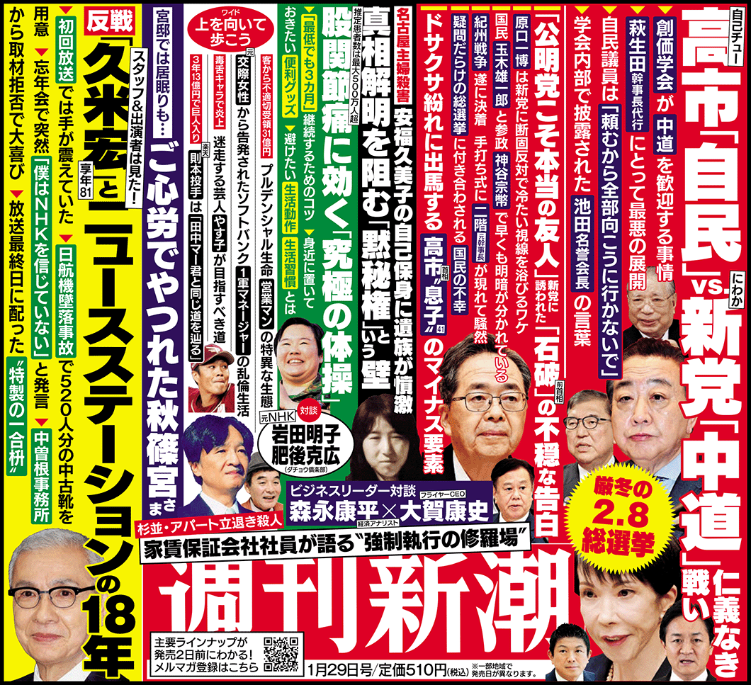 ホーム > 雑誌 > 雑誌詳細:週刊新潮 > 雑誌詳細:週刊新潮 2026年1月29日号