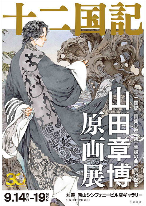 本日より、丸善 岡山シンフォニービル店 ギャラリーにて、「十二国記」山田章博 原画展が始まりました。会期は9月19日迄です。「十二国記」の世界を彩る美麗な作品を間近で鑑賞できる貴重な機会です。皆様、ぜひご来場ください。
