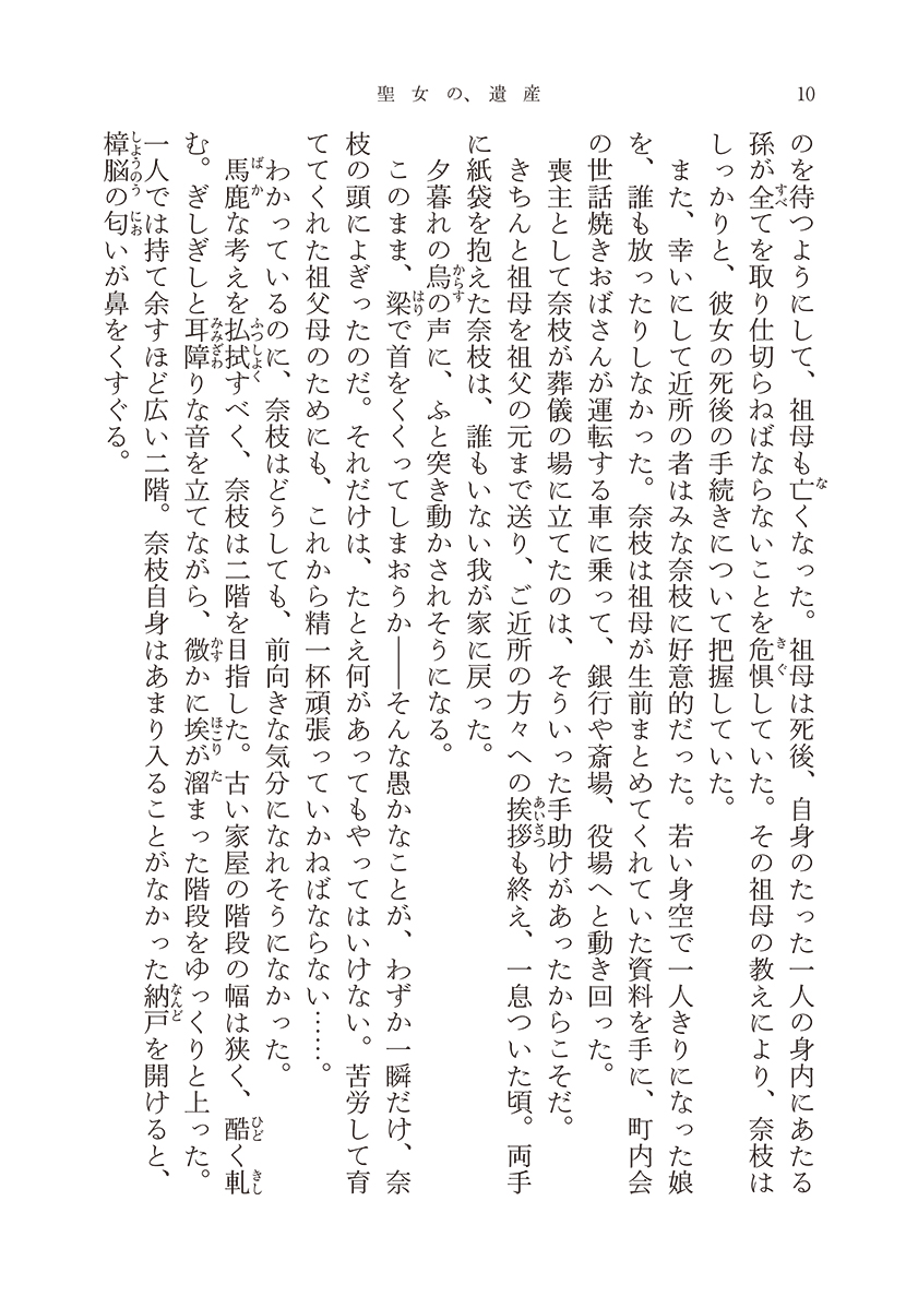 また、幸いにして近所の者はみな奈枝に好意的だった。若い身空で一人きりになった娘を、誰も放ったりしなかった。奈枝は祖母が生前まとめてくれていた資料を手に、町内会の世話焼きおばさんが運転する車に乗って、銀行や斎場、役場へと動き回った。