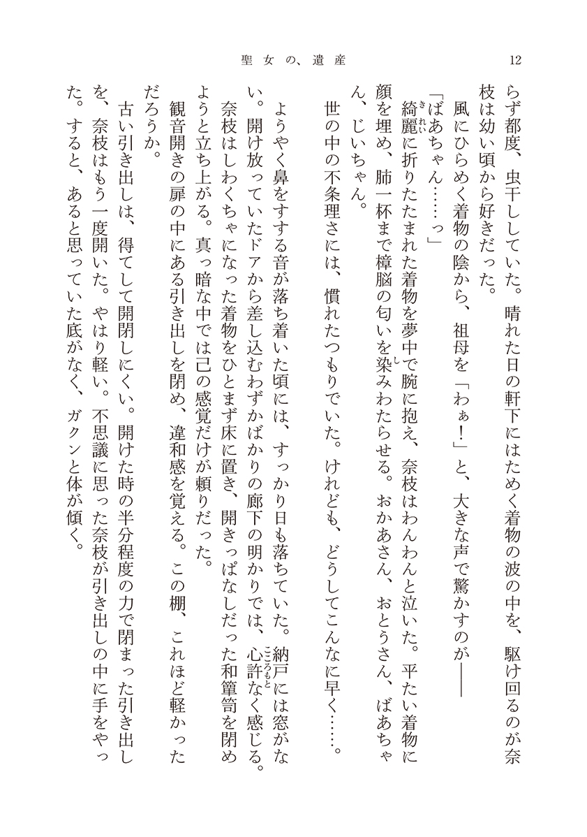 けれど、本当はわかっていた。祖父が亡くなった時、奈枝が祖母を支える必要などなかったことを。子どもだった奈枝はまだ、祖母の膝で泣き崩れても、許されたことを。祖母のために泣かない、だなんて噓だった。泣かなかったのは……泣けなかったのは、泣いてしまえばきっと──もう立ち上がれないと、そう思ってしまうだろう弱い自分を、知っていたから。