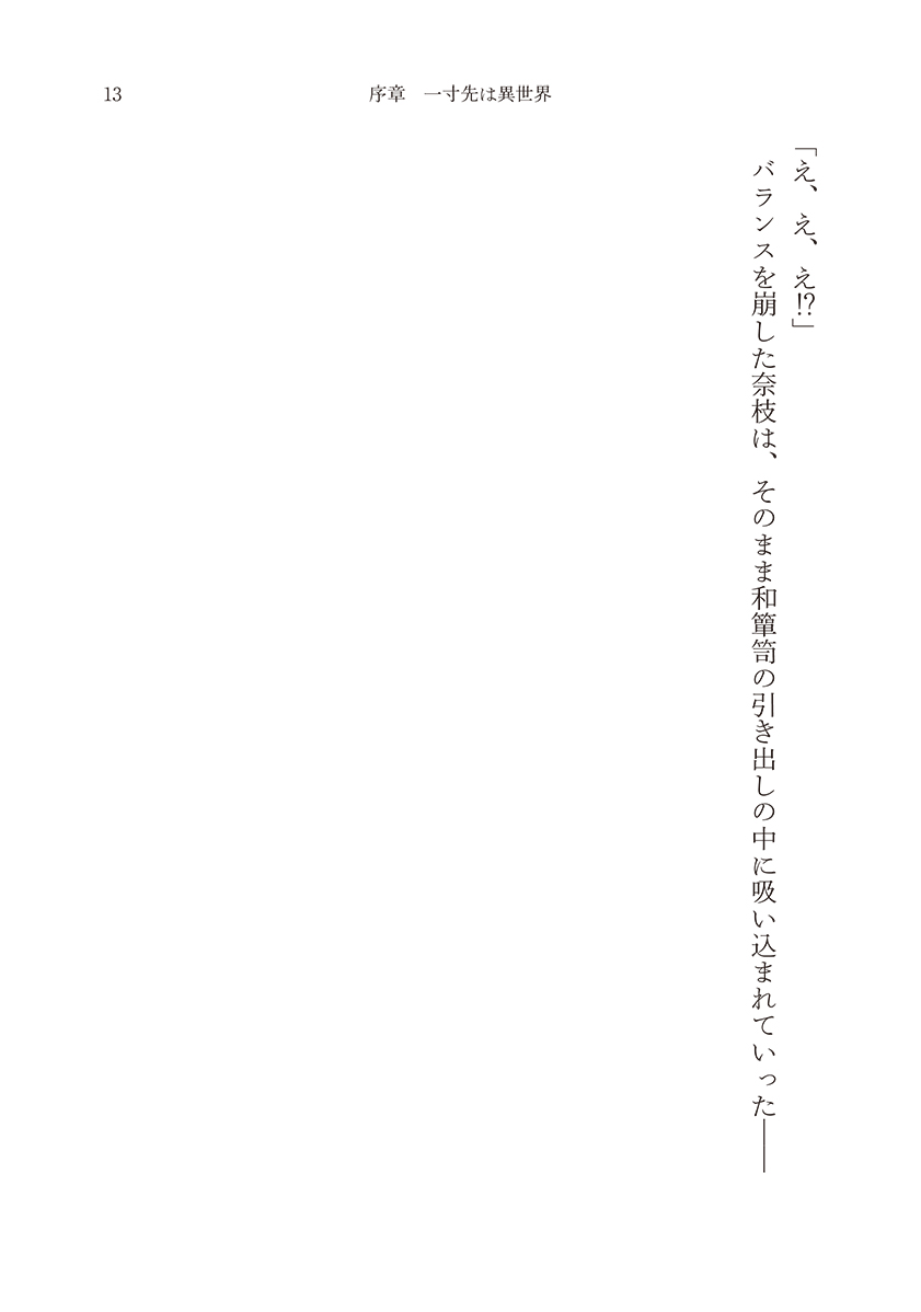 バランスを崩した奈枝は、そのまま和簞笥の引き出しの中に吸い込まれていった──
