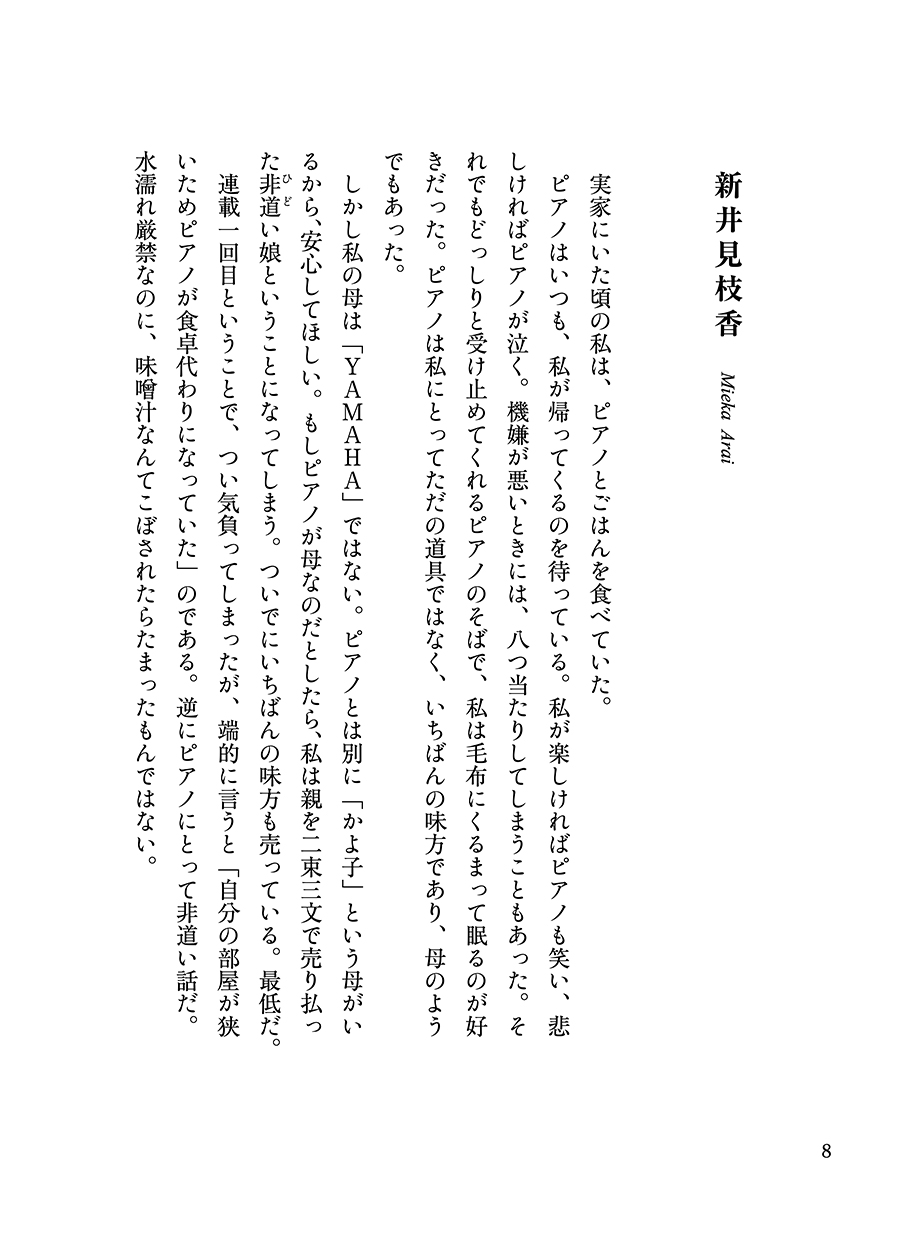 しかし私の母は「YAMAHA」ではない。ピアノとは別に「かよ子」という母がいるから、安心してほしい。もしピアノが母なのだとしたら、私は親を二束三文で売り払った非道い娘ということになってしまう。ついでにいちばんの味方も売っている。最低だ。