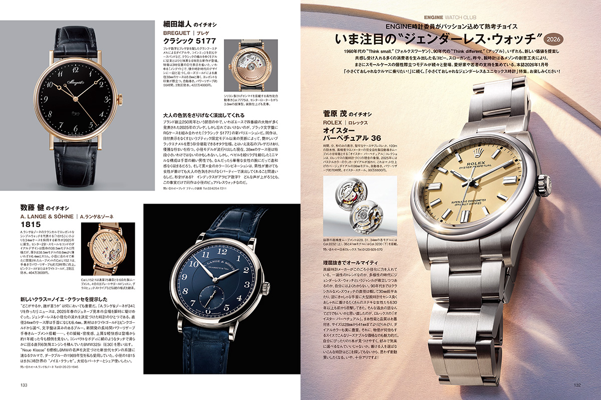 今月号の時計特集では、小さくておしゃれなジェンダーレス&ユニセックス・ウォッチを取り上げました。スモールケースの個性が際立つ、ペアでも共有できるモデルの数々を紹介しています。こちらもご期待ください。