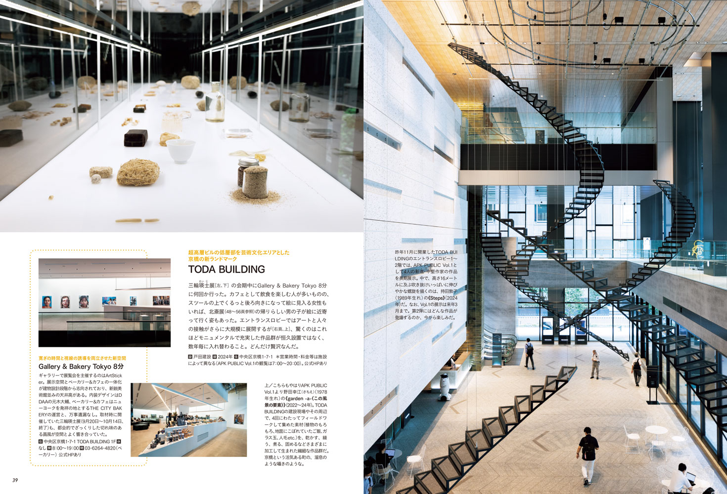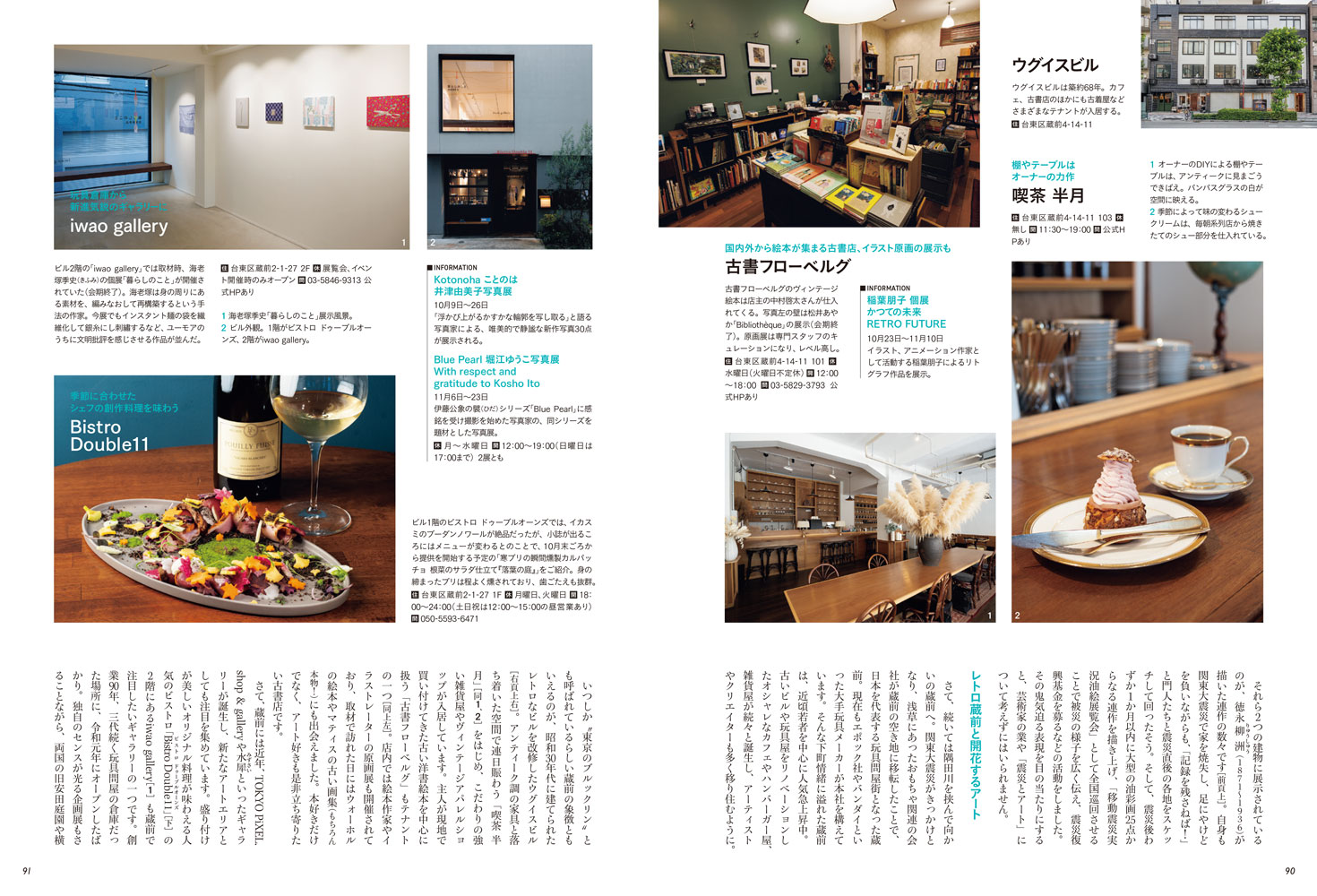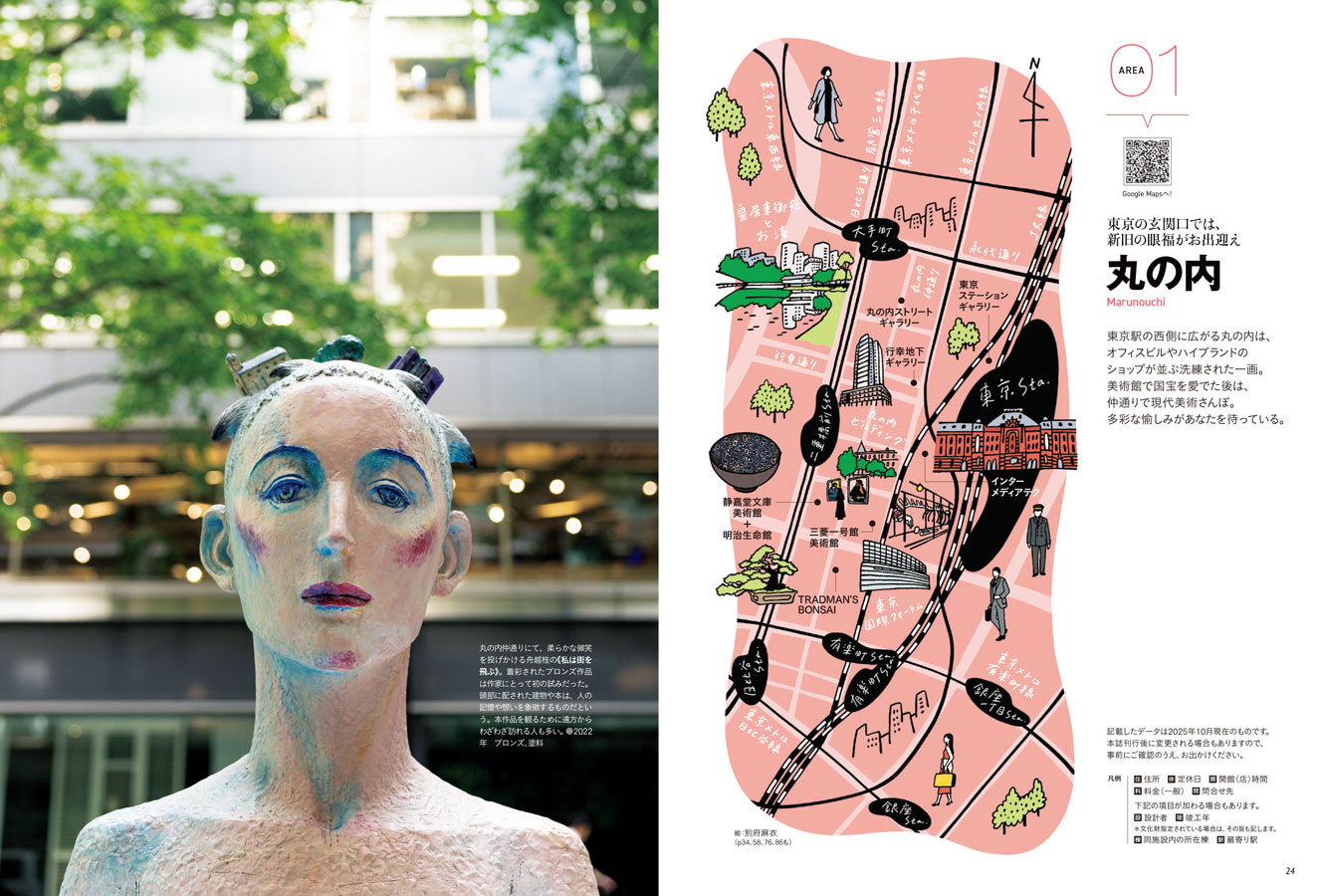 このほかにも、21世紀版パブリックアートから、再開館1年にして杉本博司先生とスリリングなセッションを見せる荏原 畠山美術館まで、ヴァラエティ豊かに最新のアートスポット情報をお届け。イラストレーター別府麻衣さんによる、エリア別イラストマップ(Google Mapとも連動!)も本特集の見どころのひとつです。ぜひぜひ、本誌を手に街に出ましょう。