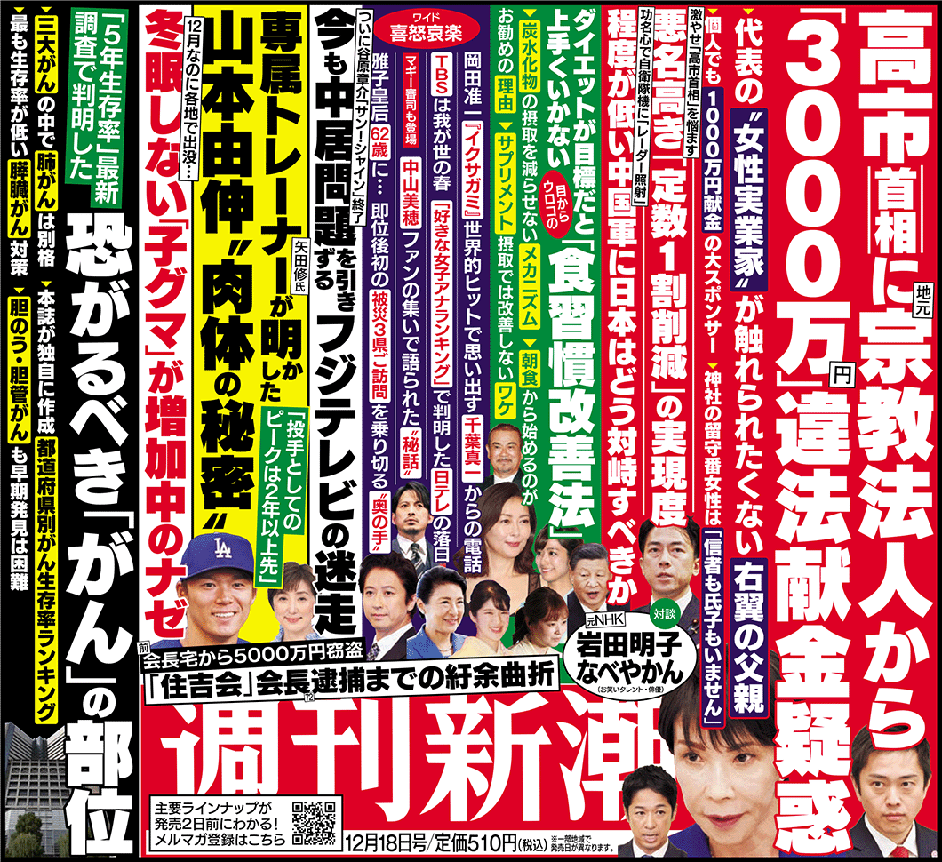 先ごろ、2024年分の政治資金収支報告書が公表された。そこでは高市早苗首相(64)が代表を務める自民党支部が、企業から政治資金規正法の上限を超える献金を受けていたことが発覚したばかりである。ところが、同支部の“疑惑”は、これにとどまらなかった。