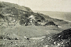 (右)機関車1両+客車8両の編成のうち、客車2両のみが海岸に横たわり、残りは海中に没した