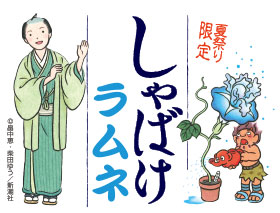 こんなにすご?い夏祭りで、限定「しゃばけラムネ」も販売されます! 夏祭りの前夜祭として開催される、畠中さんへの質問大会&柴田ゆうさんの原画展に来られないしゃばけファンは、是非この機会に「しゃばけラムネ」をゲットしてください!