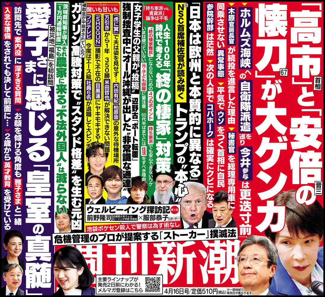 世の中が左に振れても右に振れても、「週刊新潮」は常に変わらぬ主張を堅持し、その一貫した姿勢が読者に支持されてきました。今後もマスコミ界の「剣鬼」として、「魔剣や凶刃」に磨きをかけていきたいと思っています。